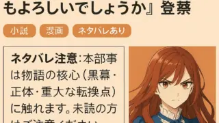 最後にひとつだけお願いしてもよろしいでしょうか 【wikiまとめ+完全ネタバレ】『最後にひとつだけお願いしてもよろしいでしょうか』登場人物・あらすじ・各巻解説 ネタバレ注意:本記事は物語の核心(黒幕・正体・重大な転換点)に触れます。未読の方はご注意ください。 作品概要(wiki要約) 『最後にひとつだけお願いしてもよろしいでしょうか』は、鳳ナナさんによるライトノベル作品です。アルファポリスの女性向... 2025.10.12 最後にひとつだけお願いしてもよろしいでしょうか